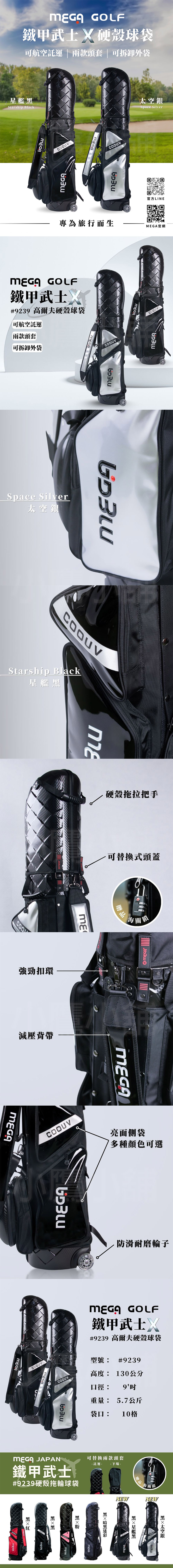 MEGA #9239 高爾夫 球桿袋 PRO鐵甲武士 硬殼球袋 拖輪球袋 滾輪球袋 有輪桿袋 可航空託運 兩款頭套 可拆卸外袋 9吋大口徑 ABS材質 耐磨抗摔 25 NEW