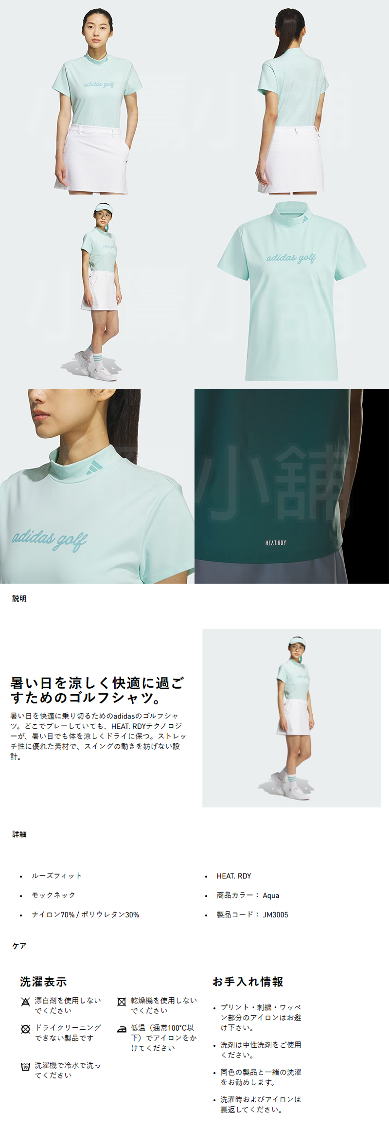 Adidas JM3005 阿迪達斯 高爾夫 立領短袖 短袖上衣 女仕 HEAT.RDY科技涼感布料 涼爽舒適 適合夏日 寬鬆版型 70%尼龍、30%聚氨酯 水藍色 25 NEW