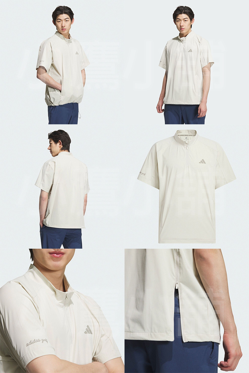 Adidas JM2938 阿迪達斯 高爾夫 短袖上衣 立領短袖襯衫 短袖圓領衫 男仕 拉鍊設計 常規版型 85%尼龍、15%彈性纖維 米白色 25 NEW