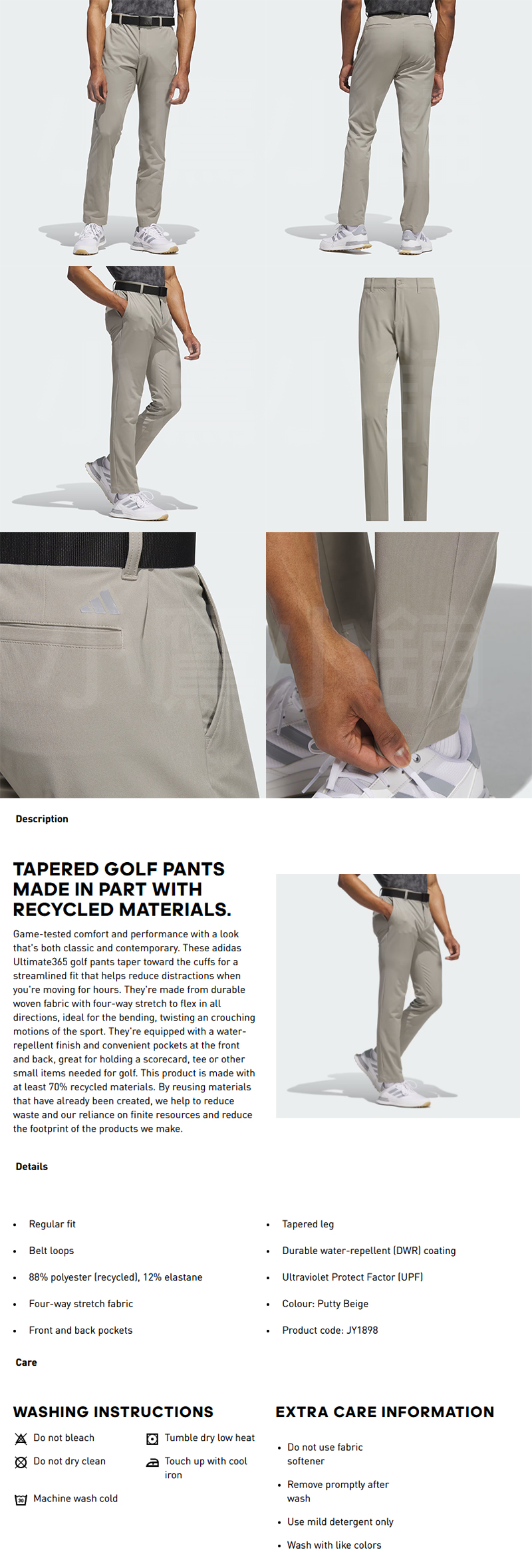Adidas JY1898 阿迪達斯 高爾夫 運動長褲 長褲 男仕 錐形褲管 耐用平織布料 四向彈性拉伸 防潑水塗層 常規版型 88%聚酯纖維、12%彈性纖維 25 NEW
