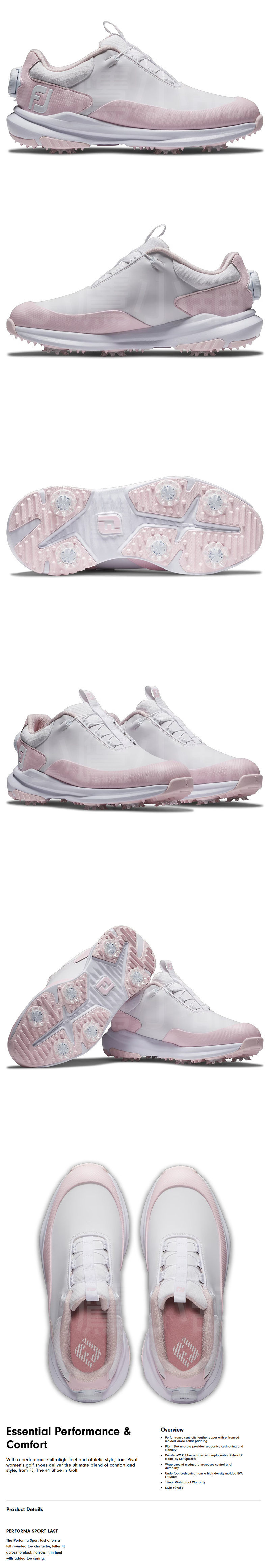 FootJoy Tour Rival BOA 97856 高爾夫球鞋 運動鞋 女仕 有釘 BOA旋扣式鞋帶 防水性能 舒適貼合 合成皮革鞋面 提供緩衝和抓地力 白/粉紅 25 NEW