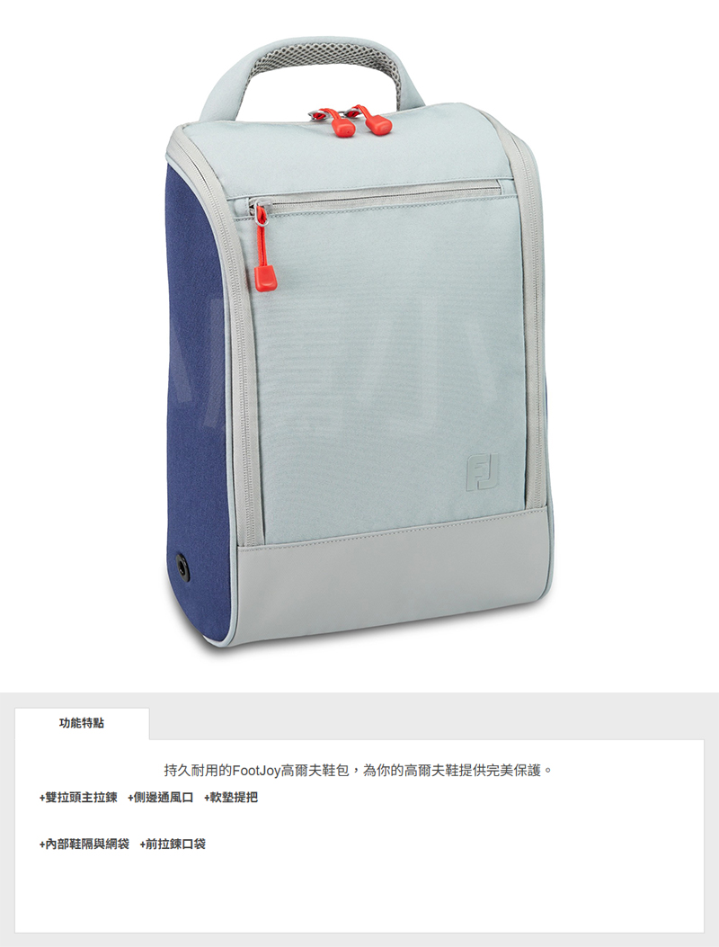 FOOTJOY 31557 高爾夫 高級鞋袋 雙拉頭主拉鍊 側邊通風透氣口 軟墊手拿提把 內部鞋隔層與網袋 前拉鍊收納袋 持久耐用布料 灰藍色 25 NEW
