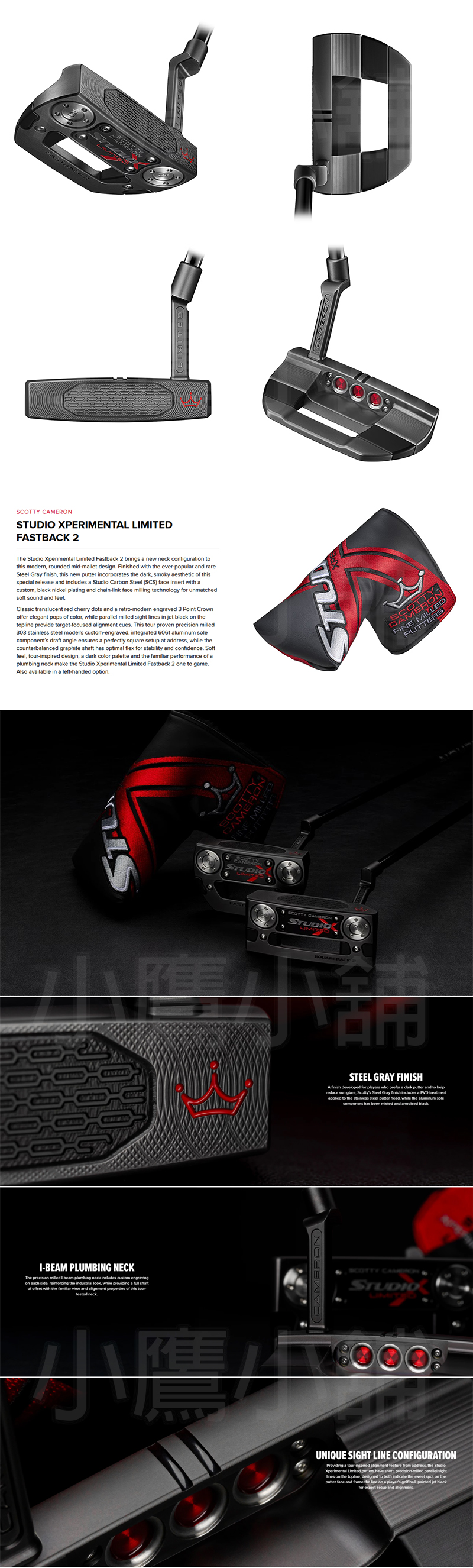 [全台限量] Titleist Scotty Cameron Studio Xperimental Fastback 2 高爾夫推桿 鋼灰色鍍層 鏈式銑削技術 純黑鍍鎳碳鋼嵌入式桿面 工字樑管式桿頸 巡迴賽瞄準線配置 25 NEW