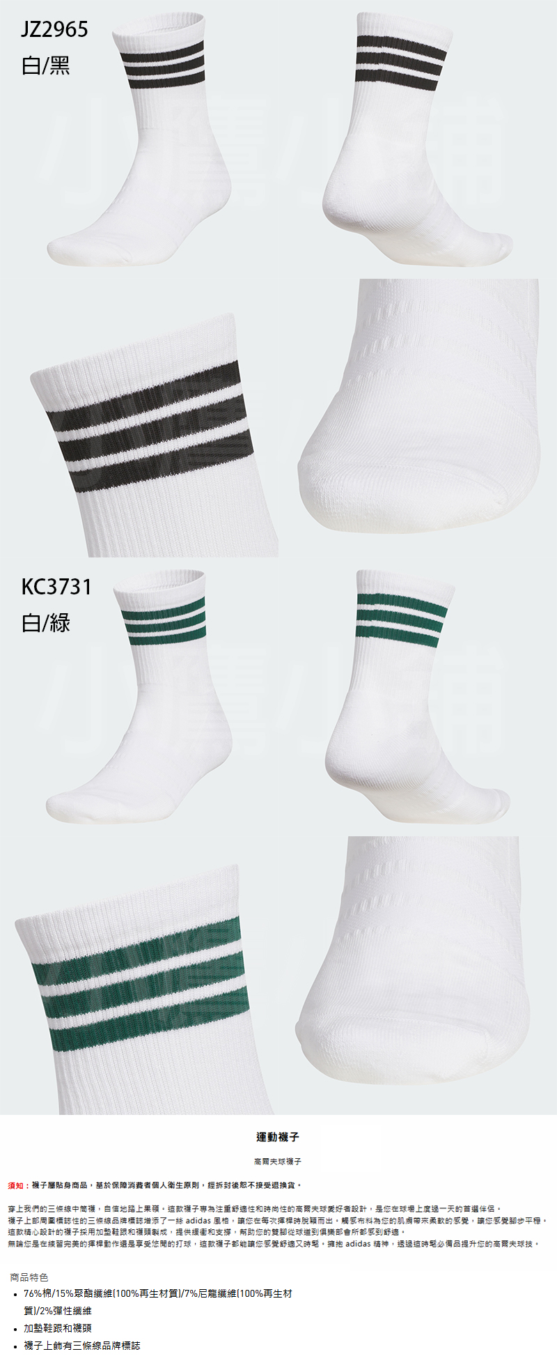 Adidas JZ2965 KC3731 阿迪達斯 三條紋 高爾夫球襪 運動襪 襪子 中筒襪 男仕 加墊鞋跟和襪頭 提供緩衝和支撐 兩色 26 NEW
