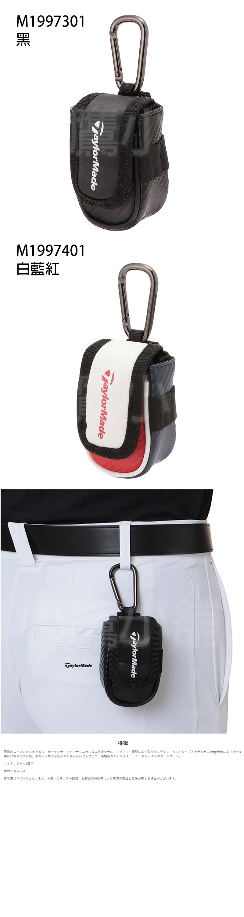 TaylorMade Golf UN038 M1997系列 U26473 高爾夫 小球包 置球包 輕量化 開口磁性閉合 背面有登山扣和皮帶扣環 側面可收納TEE 方便攜帶 可置兩顆球 黑、白藍紅、米黑 三色 24 NEW