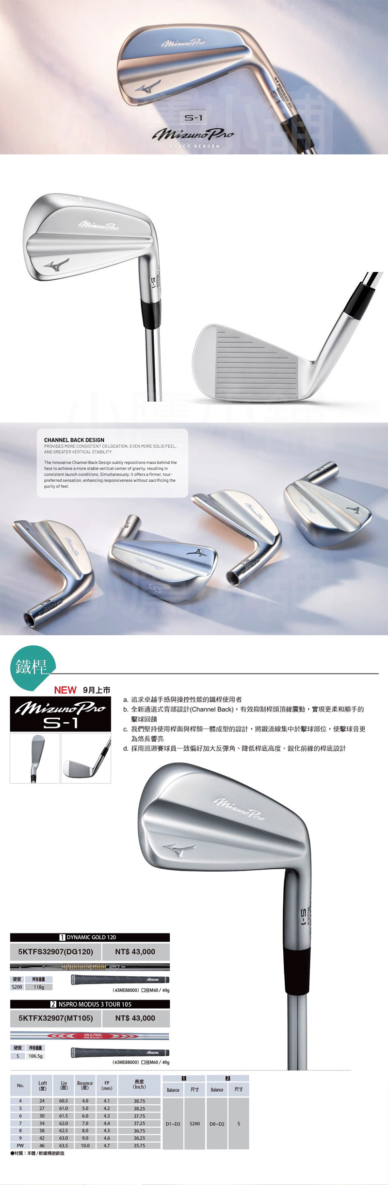 [鐵身] Mizuno Pro S-1 美津濃 高爾夫 鐵桿組 S1 重視擊球易打性和飛行距離 鉬鉻合金刀背型結構 性能全面升級 I4-9、PW 共7支 25 NEW