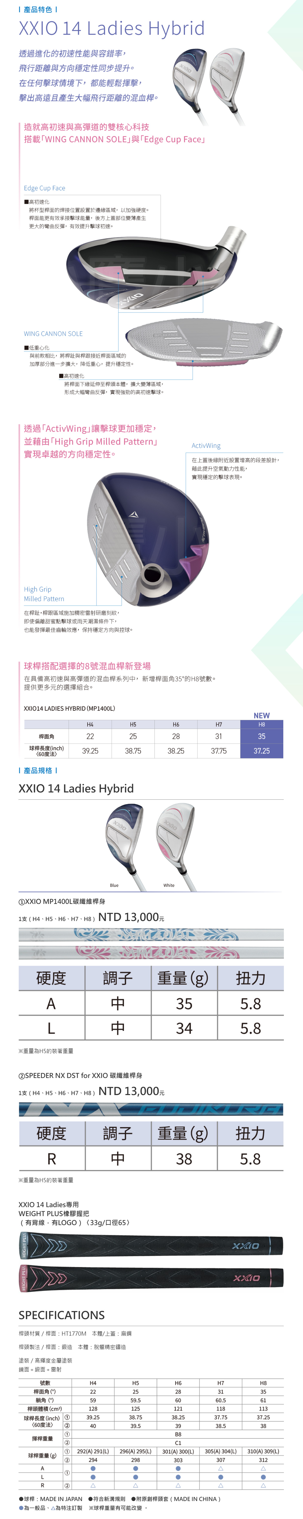 [女仕] Dunlop XXIO 14 MP1400 Ladies Hybrid 高爾夫 混血木桿 鐵木桿 小雞腿 高初速與高彈道 卓越方向穩定性 大幅提高飛行距離 兩色 25 NEW
