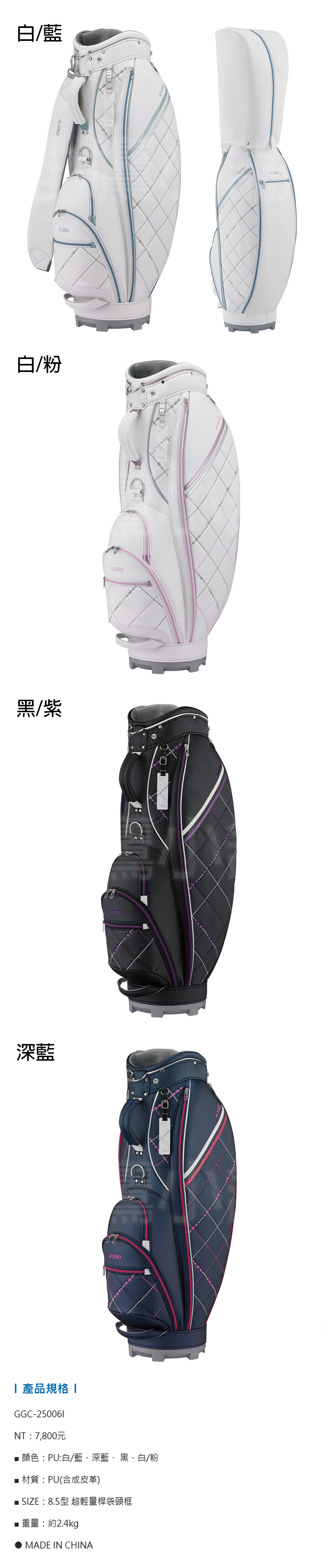Dunlop XXIO GGC-25006i GGC-X165W 高爾夫球桿袋 女仕 輕量便攜 方便多口袋 底部穩定 可直立 合成皮革 白藍、白粉、黑紫、深藍 四色 26 NEW