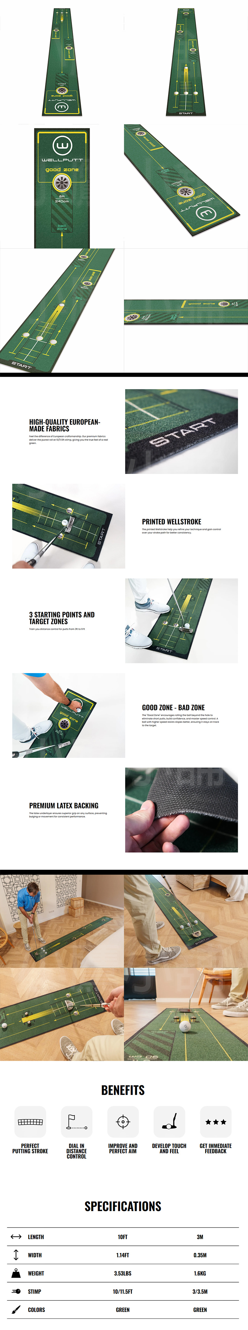 WELLPUTT 10FT 3M START 高爾夫 推桿練習墊 推桿練習器 提高推桿技巧 速度控制 準確性訓練 26 NEW