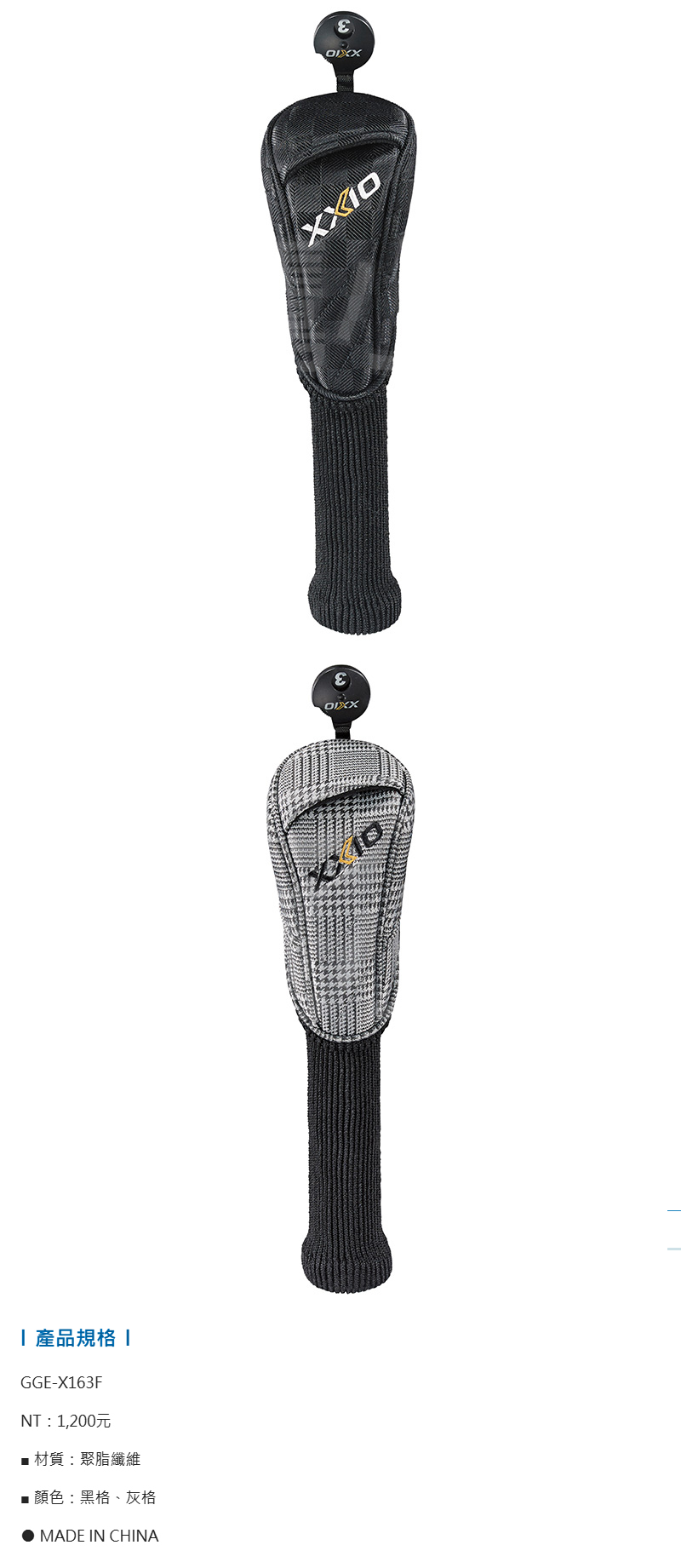 Dunlop XXIO GGE-X164H 高爾夫 混血木桿套 球桿套 混血木桿適用 聚脂纖維 黑格、灰格 兩色 26 NEW