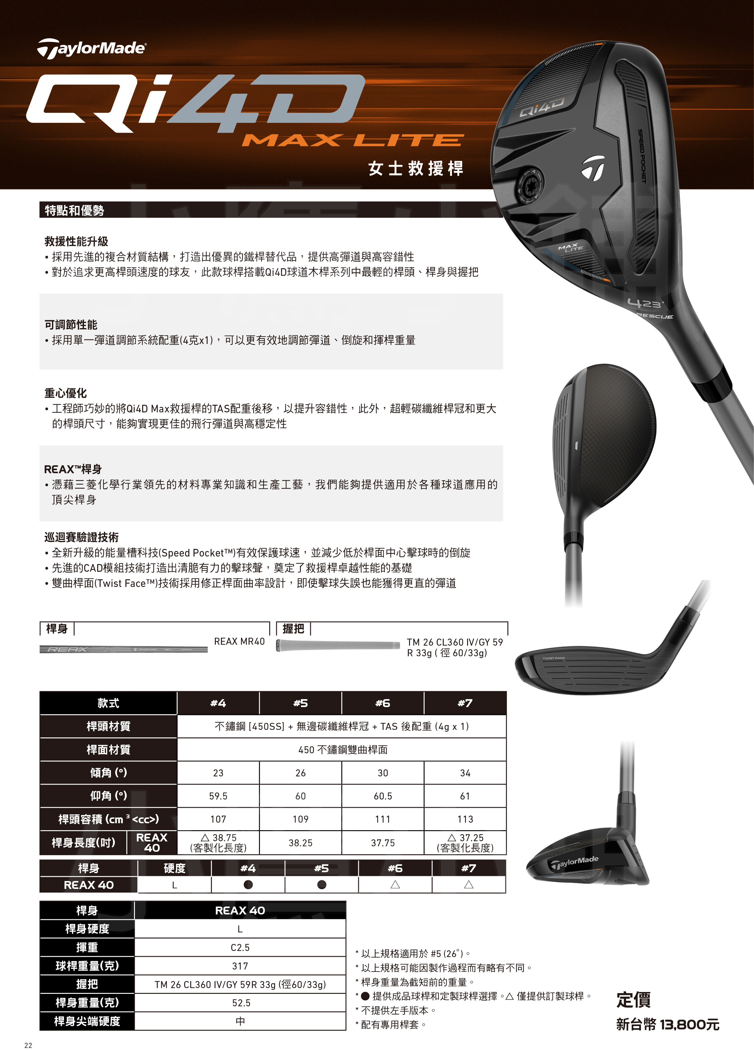 [女仕] TaylorMade Qi4D MAX LITE Womens Rescue 泰勒梅 高爾夫 鐵木桿 救援木桿 混血木桿 小雞腿 採用平衡重心設計 實現穩定的飛行軌跡和您期望的彈道 26 NEW