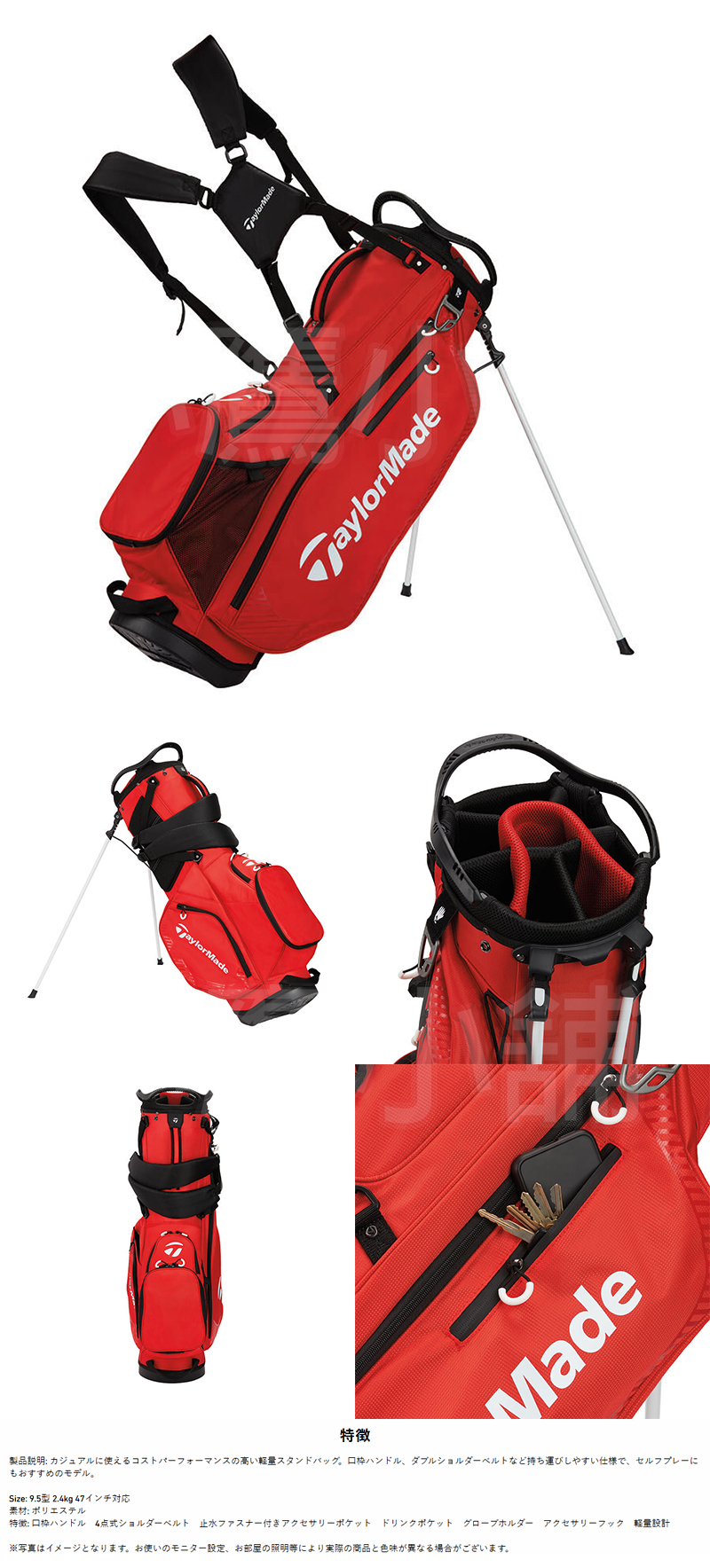 TaylorMade TF531 V9760101 泰勒梅 高爾夫 球桿袋 腳架袋 輕量設計 大容量收納空間 頂部握把設計 雙肩背帶 聚酯纖維 紅色 26 NEW