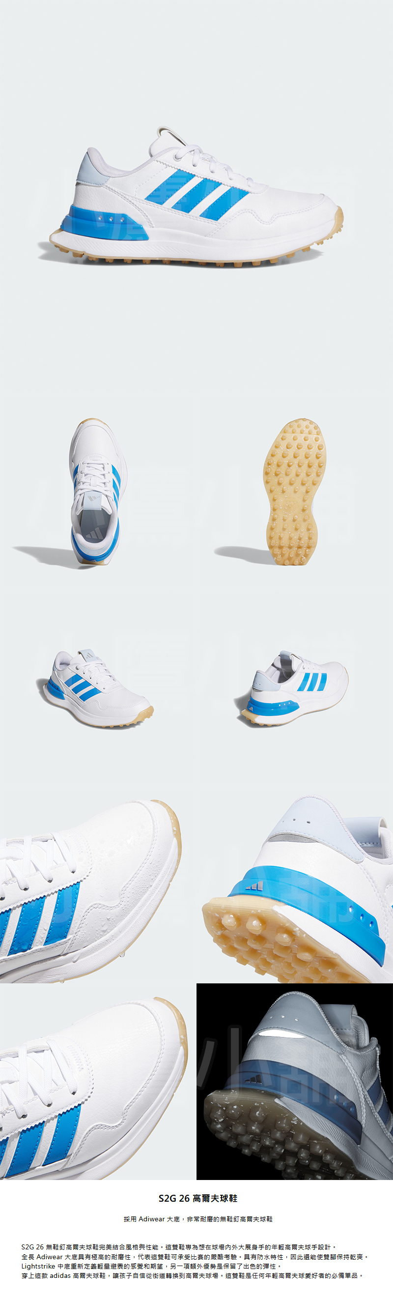 Adidas JR1894 阿迪達斯 高爾夫球鞋 運動鞋 兒童 青少年 無釘 男女適用 防水皮革鞋面 耐磨橡膠大底 編織鞋墊 26 NEW