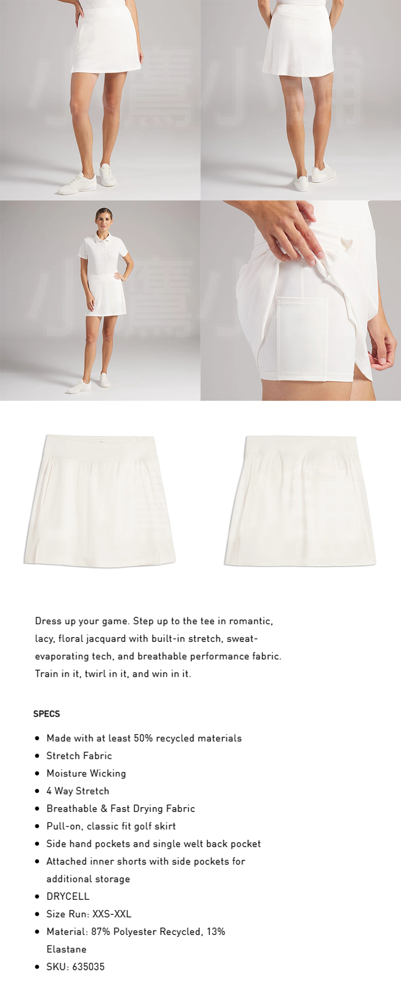 PUMA Lana Floral Lace Jacquard Skirt 635035 高爾夫 花卉蕾絲提花新月短裙 女仕 短裙 吸濕排汗 透氣速乾 四向彈性布料 白色 26 NEW
