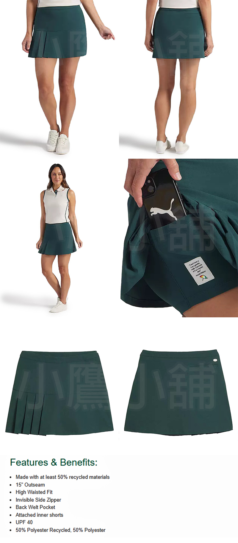 PUMA x ARNOLD PALMER SKORT 632462 高爾夫 不對稱百褶短裙 女仕 褲裙 UPF40防紫外線 後口袋設計 森林綠 26 NEW