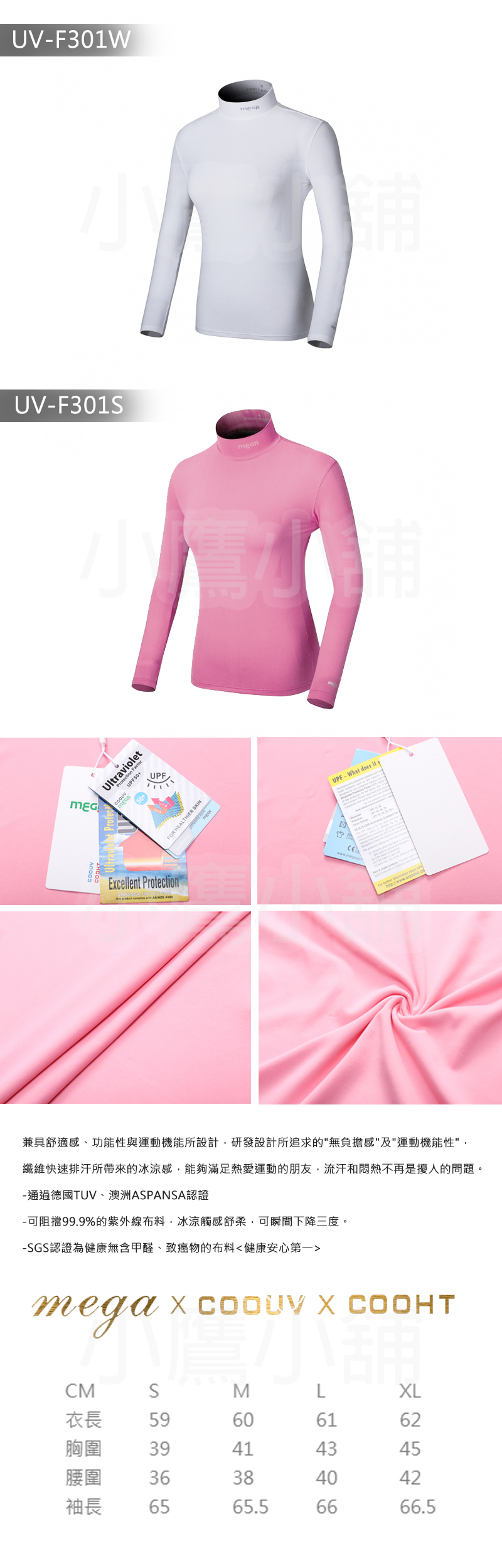 MEGA COOL&SOFT UV-F301 高爾夫 女生 防曬涼感機能衣 滑衣 抗UV 吸濕排汗 透氣 擁有多國認證 抗UV 防曬效果達UPF50+ 白/櫻花粉 共兩色 '20 NEW