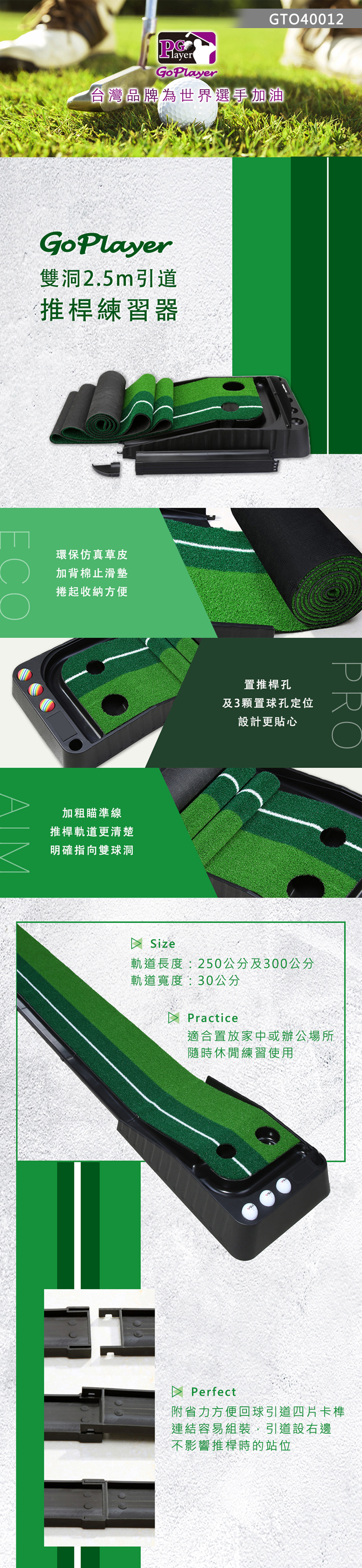 Go Player 雙洞2.5M引道推桿練習器 GTO40012 高雅美觀 推桿更實境 提高推桿技巧 瞄準和速度控制訓練 人造草 '20 NEW