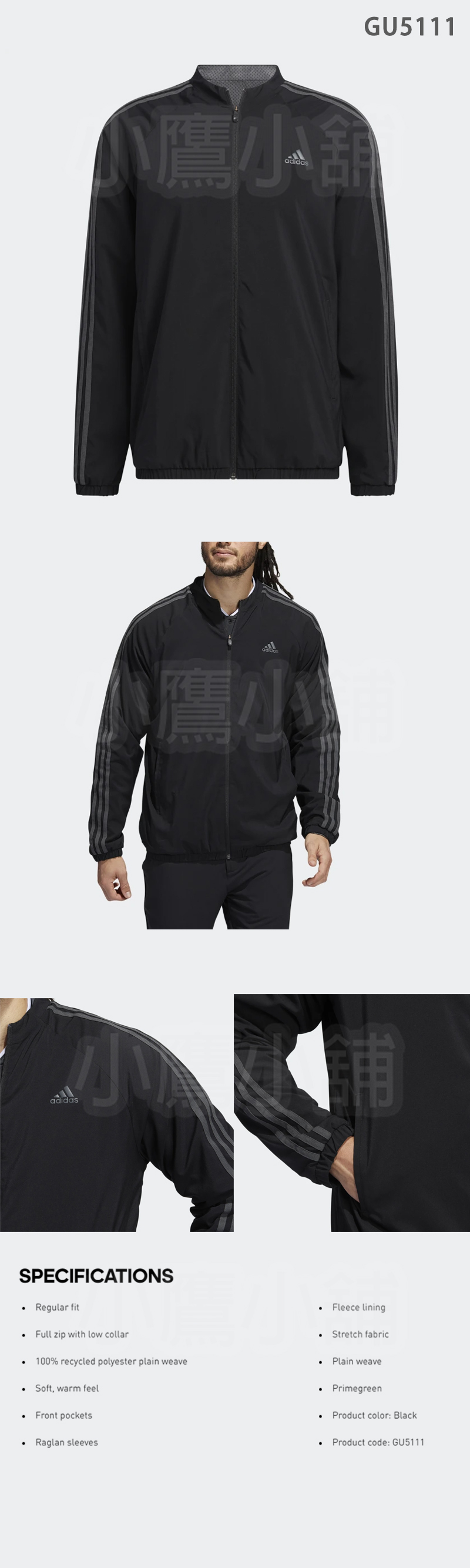 [冬季特價優惠] Adidas Golf FULLY LINED FULL-ZIP JACKET GU5111 高爾夫 男仕外套 防風外套 全拉鍊夾克 全拉鍊低領 彈力面料 黑色 21