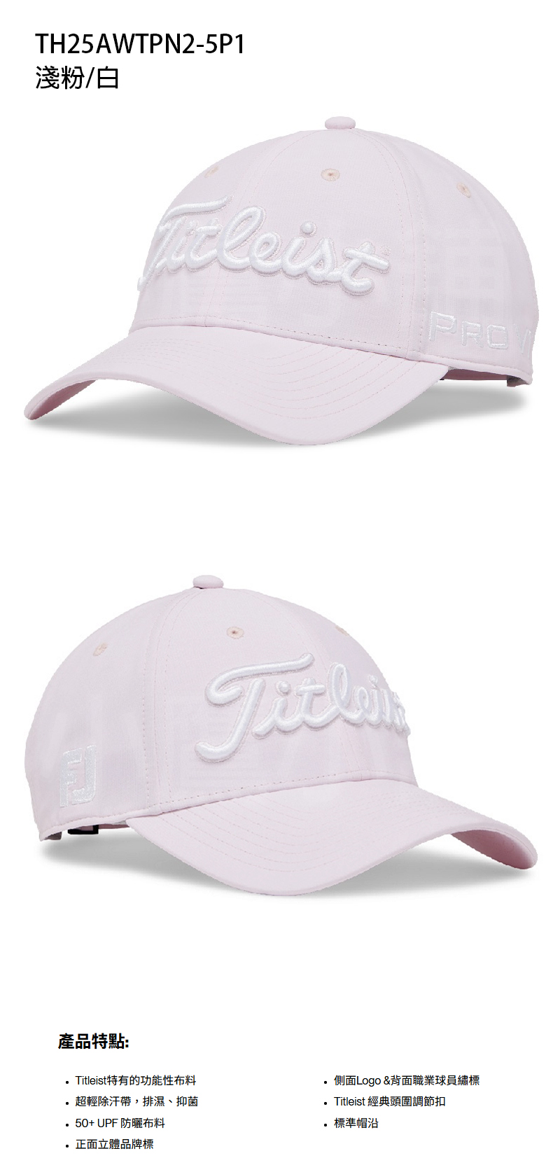 Titleist TH25AWTPN2 高仕利 高爾夫球帽 女仕 職業款功能帽 超輕抑菌吸濕排汗帶 UPF50+防曬防紫外線 頭圍尺寸調節扣 兩色 25 NEW