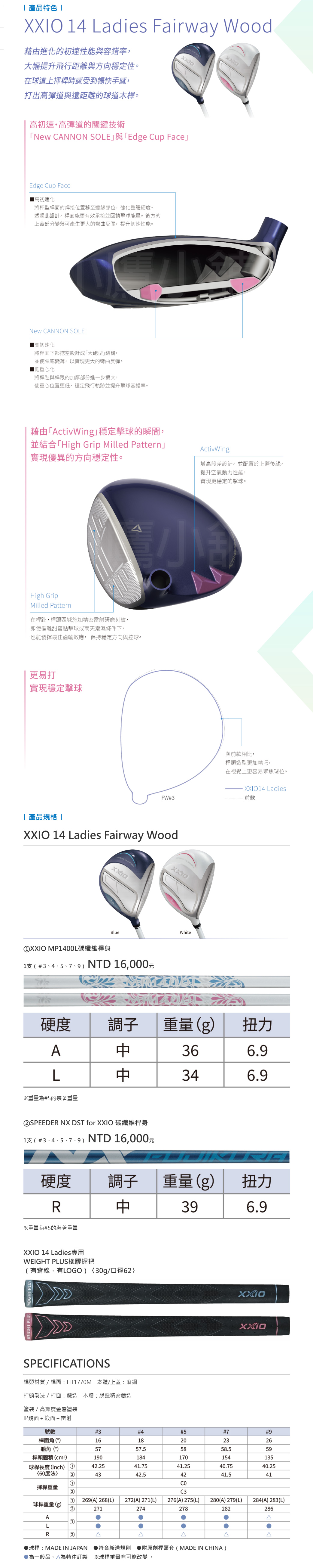 [女仕] Dunlop XXIO 14 MP1400 Ladies Fairway Wood 高爾夫 球道木桿 更高初速性能與容錯率 高彈道與遠距離 大幅提升飛行距離與方向穩定性 兩色 25 NEW