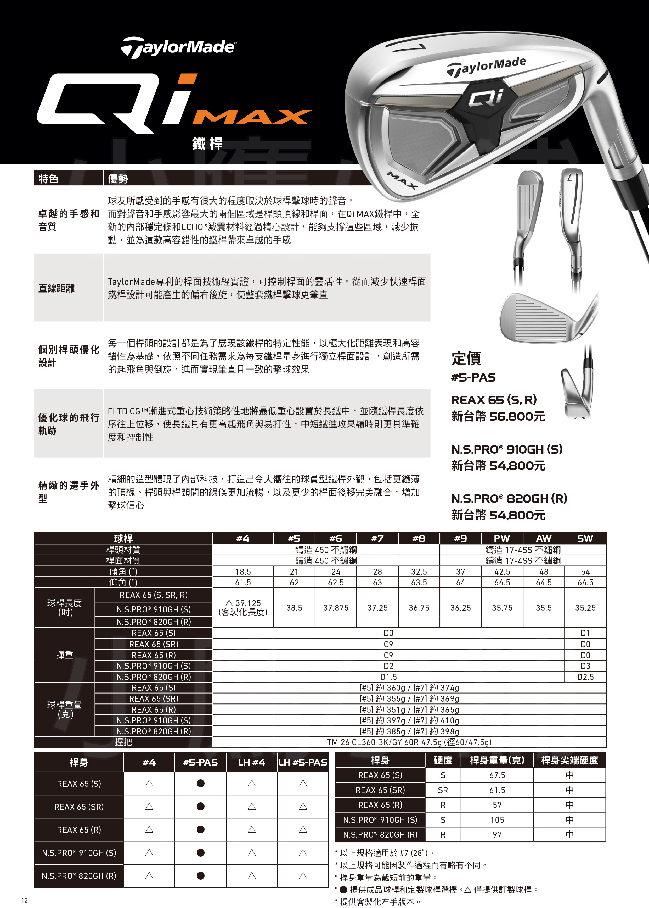 [鐵身] TaylorMade Qi MAX IRON 高爾夫 鐵桿組 更輕鬆更筆直更遠 特殊的聲音和感覺 球桿都經過優化 I5-9,P,A,S 共8支 26 NEW