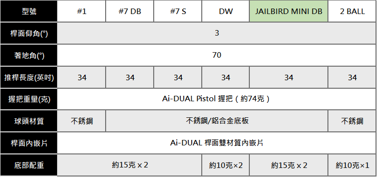 產品編號: KW/B-AI-DUAL JAILBIRD MINI DB PUTTER