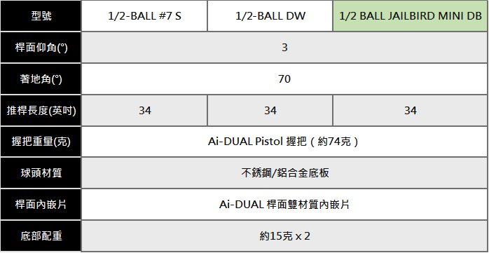 產品編號: KW/B-AI-DUAL JAILBIRD MINI 1/2-BALL DB PUTTER
