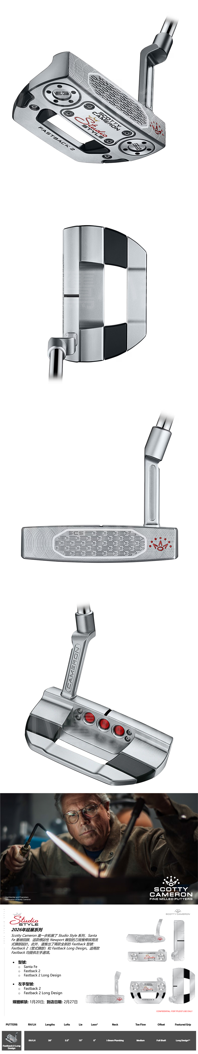 Titleist Scotty Cameron Studio Style Fastback 2 Long Design 高仕利 高爾夫 推桿 SCS碳鋼嵌入式桿面 採用鏈式桿面銑削技術 升級減振性能 26 NEW