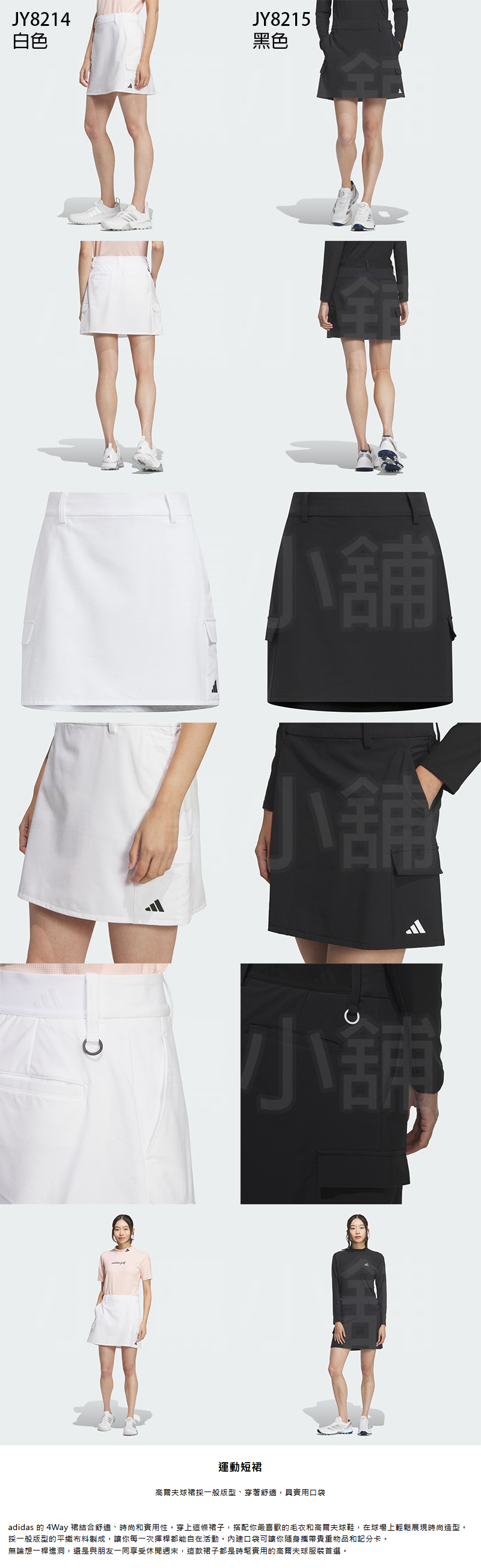 Adidas JY8214 阿迪達斯 高爾夫 運動短裙 運動裙 4Way彈性裙 平織布料 兩側口袋 一般版型 白、黑 兩色 26 NEW