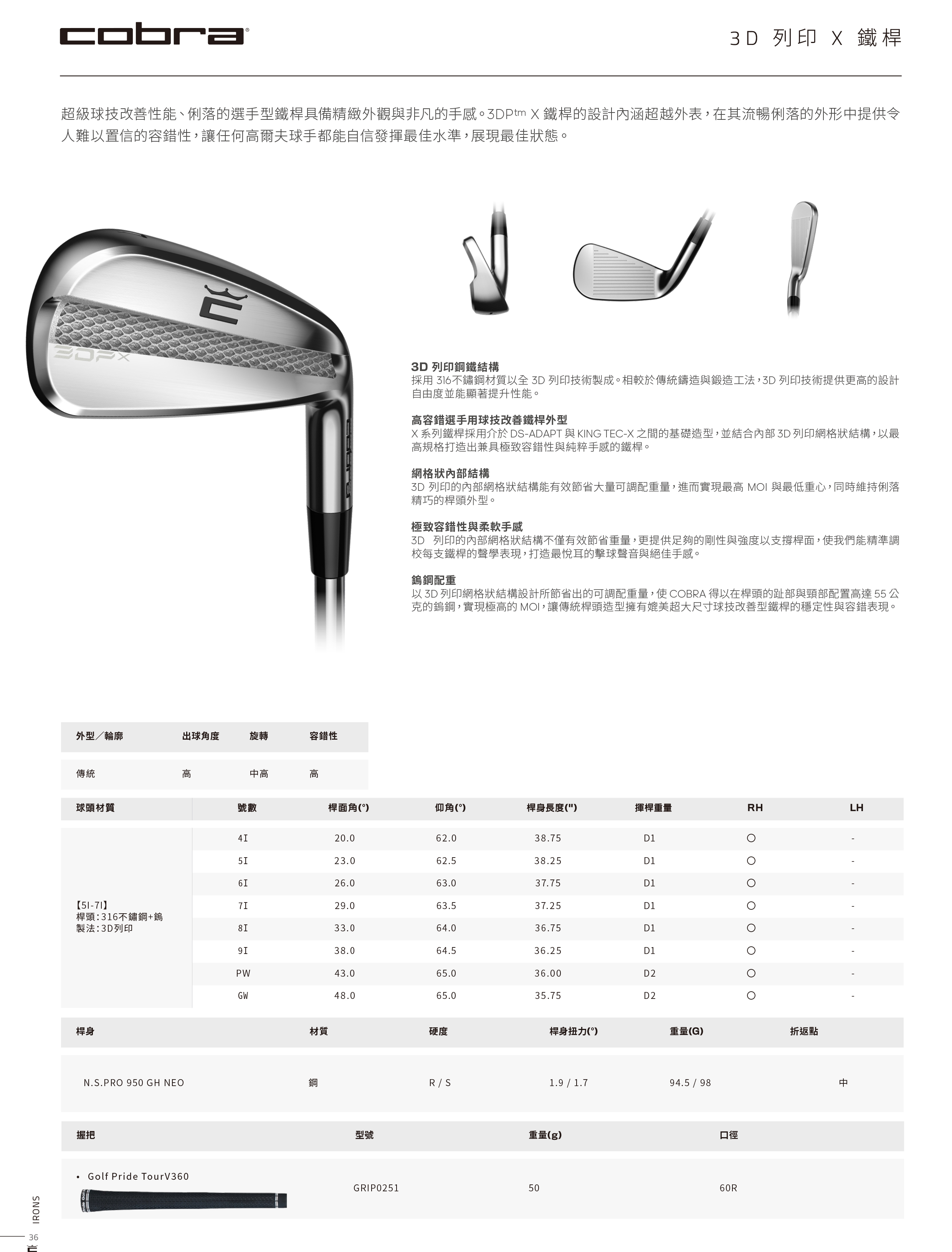 產品編號: PM/D-COBRA 3DP X Irons
