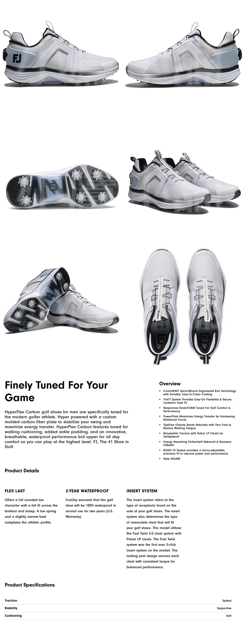 FootJoy HyperFlex 55490 高爾夫 球鞋 運動鞋 有釘 男仕 BOA旋鈕系統 透氣防水鞋面 彈性緩震襯墊 貼合舒適 卓越抓地力 26 NEW