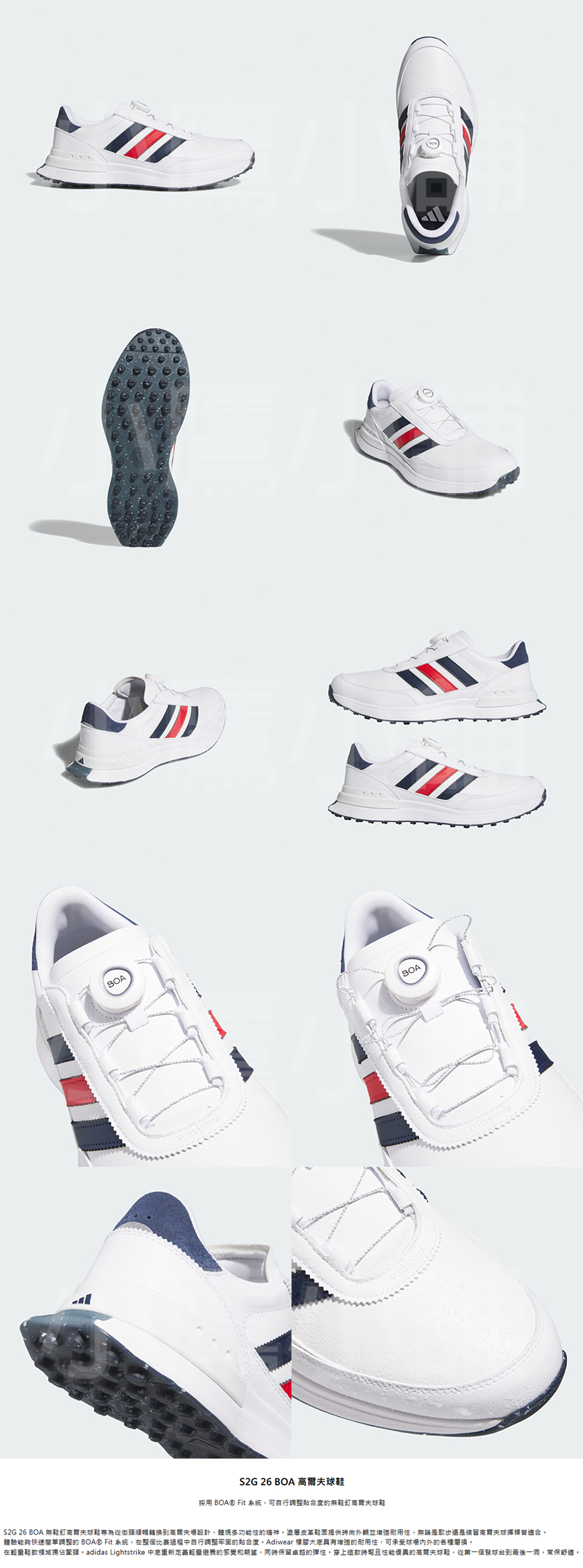Adidas JR1886 阿迪達斯 高爾夫球鞋 運動鞋 男仕 無釘 BOA旋扣式鞋帶系統 寬楦設計 防潑水塗層鞋面 彈性避震 耐磨橡膠大底 26 NEW