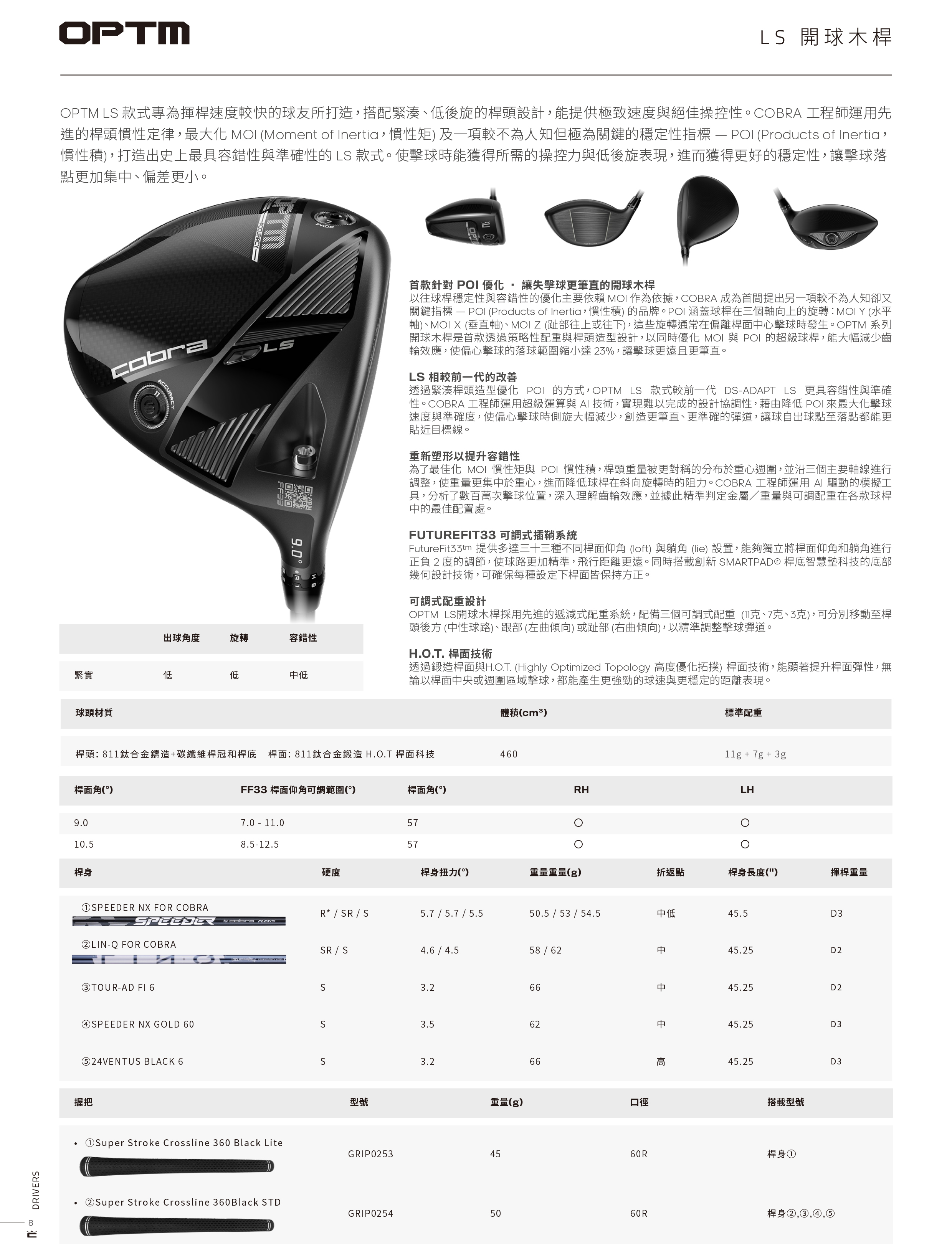 Cobra OPTM LS DRIVER 高爾夫 開球木桿 首款針對POI(慣性積)優化開球木桿 提升容錯性 可調節仰角與躺角 低後旋 操控性佳 26 NEW