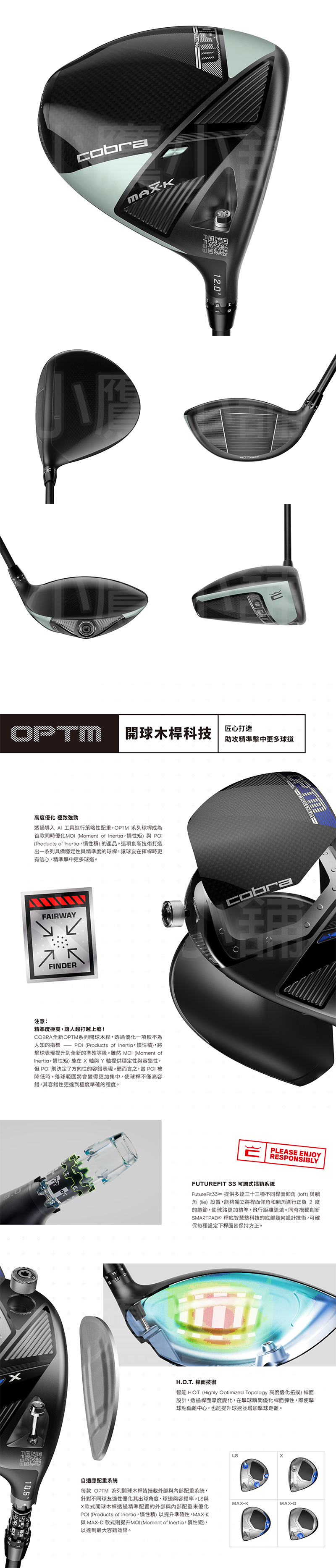 [女仕] Cobra OPTM MAX-K Womens DRIVER 高爾夫 開球木桿 首款針對POI(慣性積)優化開球木桿 提升容錯性 可調節仰角與躺角 MOI總和超過13K 26 NEW