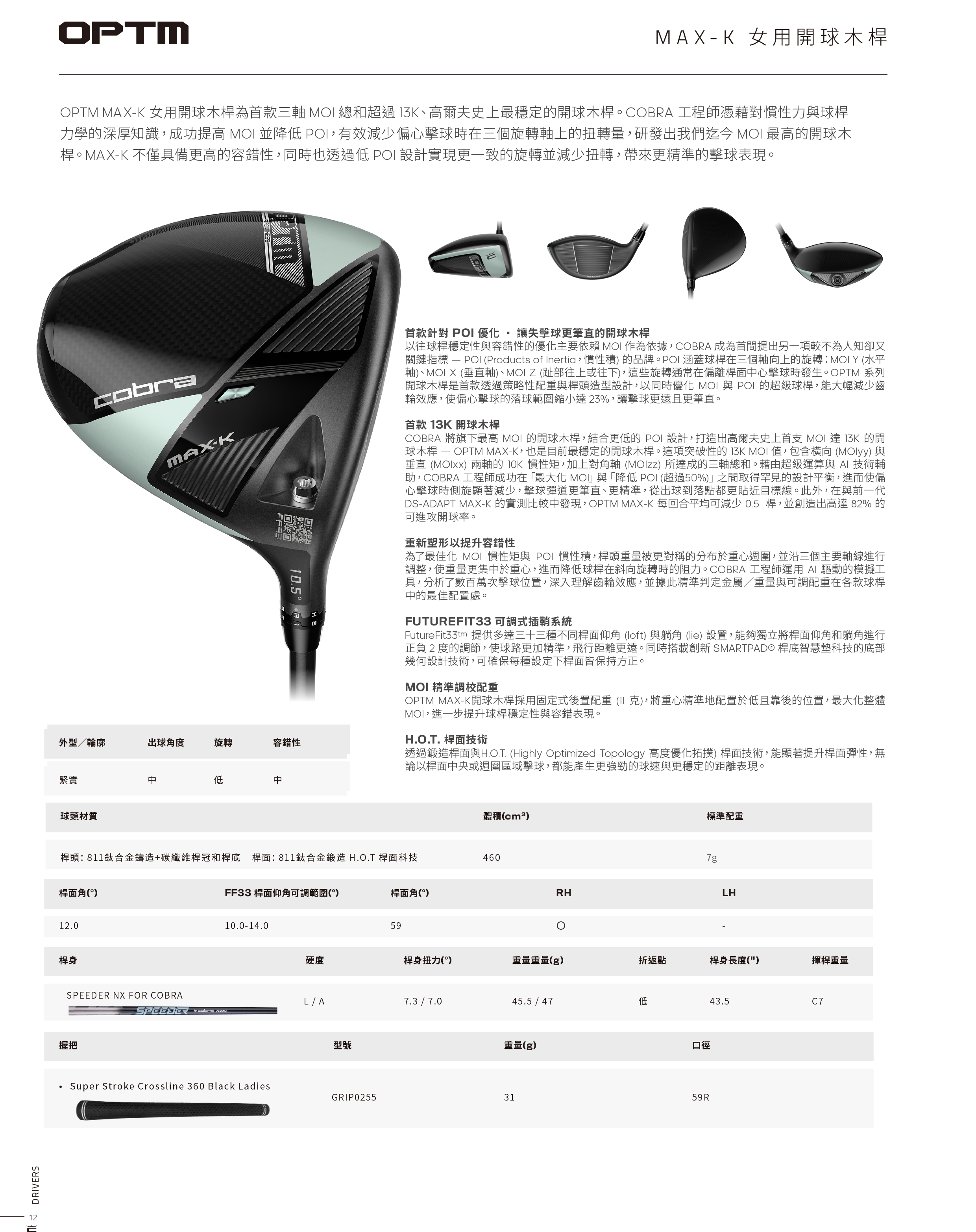產品編號: PM/C-OPTM MAX-K Womens DRIVER
