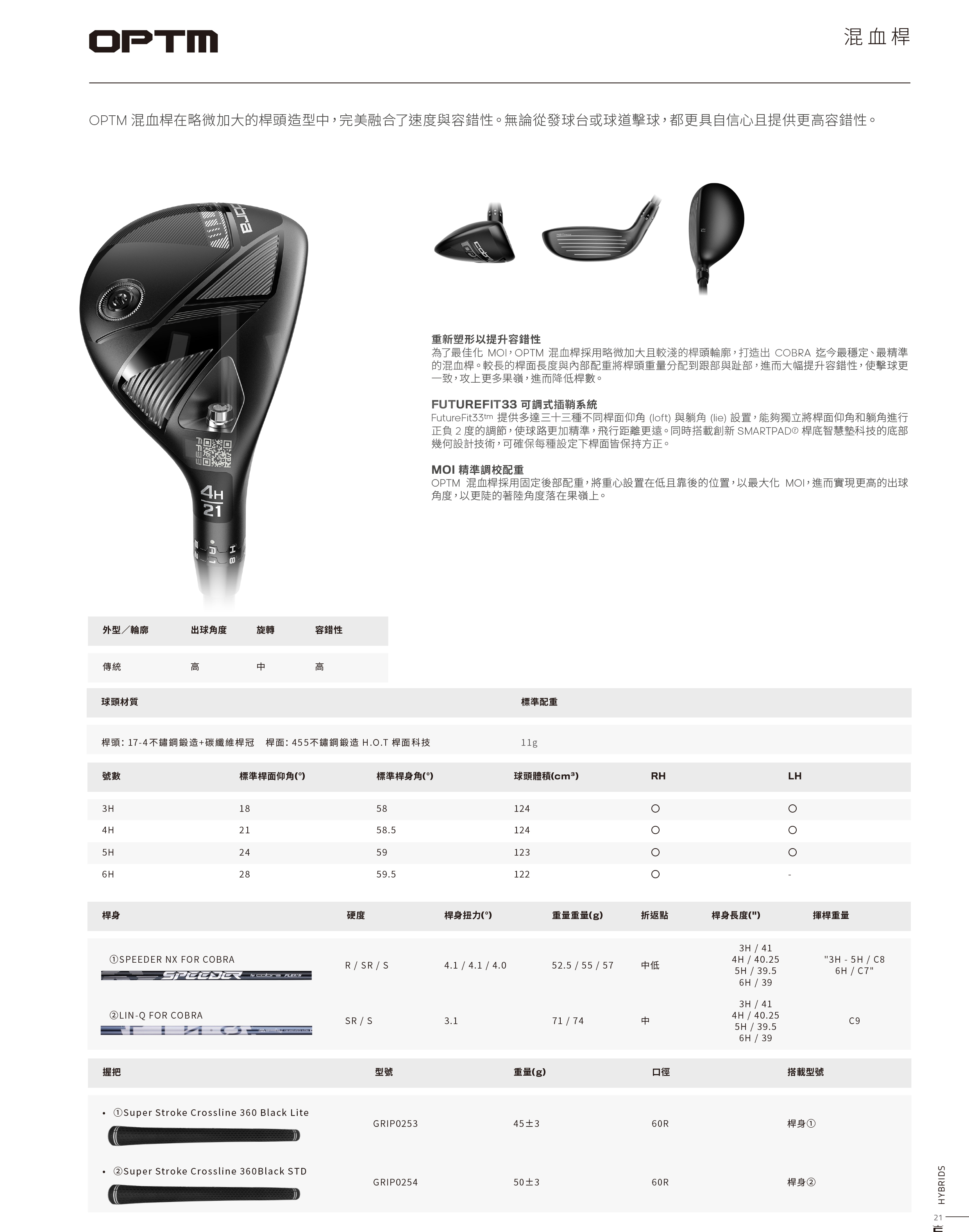Cobra OPTM Hybrid 高爾夫 混血木桿 鐵木桿 首款針對POI(慣性積)優化木桿 提升容錯性 可調節仰角與躺角 提升速度與容錯 26 NEW