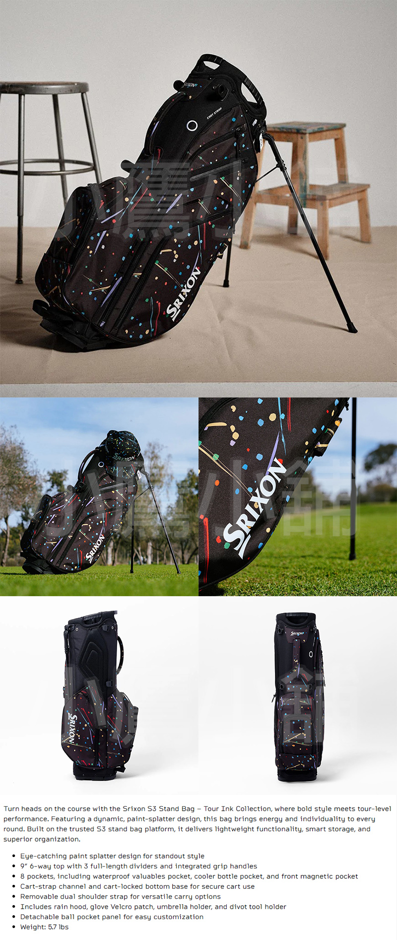 [限量] Dunlop Srixon GGC-25026i 高爾夫 球桿袋 腳架袋 輕量化設計 多收納空間 潑墨塗鴉風格 高辨識視覺設計 聚脂纖維 黑色 26 NEW