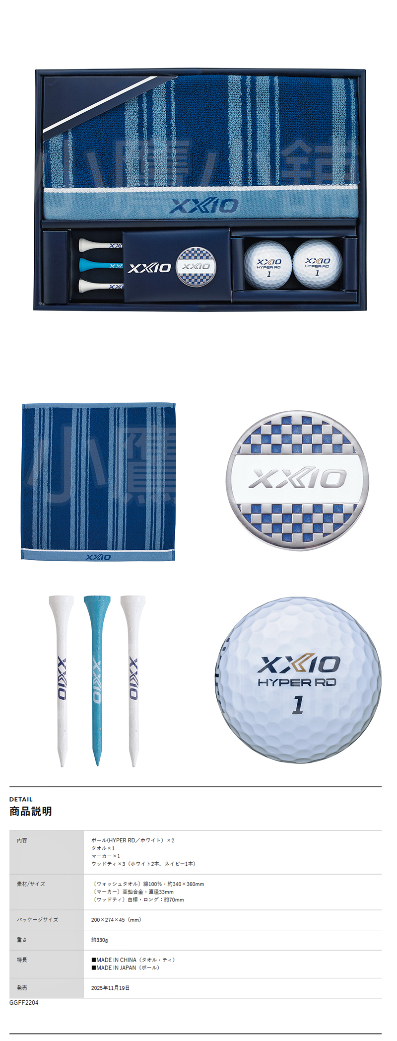 Dunlop XXIO GGF-F2204 高爾夫 毛巾組禮盒 毛巾+2顆高爾夫球+3支球梯+球標 適用於高爾夫球敘用的獎品或贈品 26 NEW