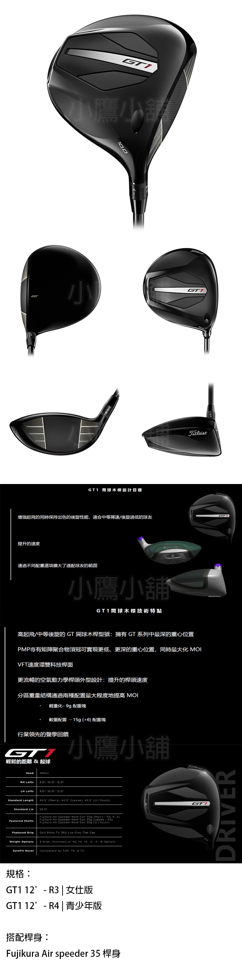 [女仕] Titleist GT1 Driver 12° R3 高爾夫 開球木桿 R3 (女仕版) 高起飛 中等後旋 VFT速度環雙科技桿面 更流暢空氣動力學桿頭設計 提升桿頭速度 26 NEW