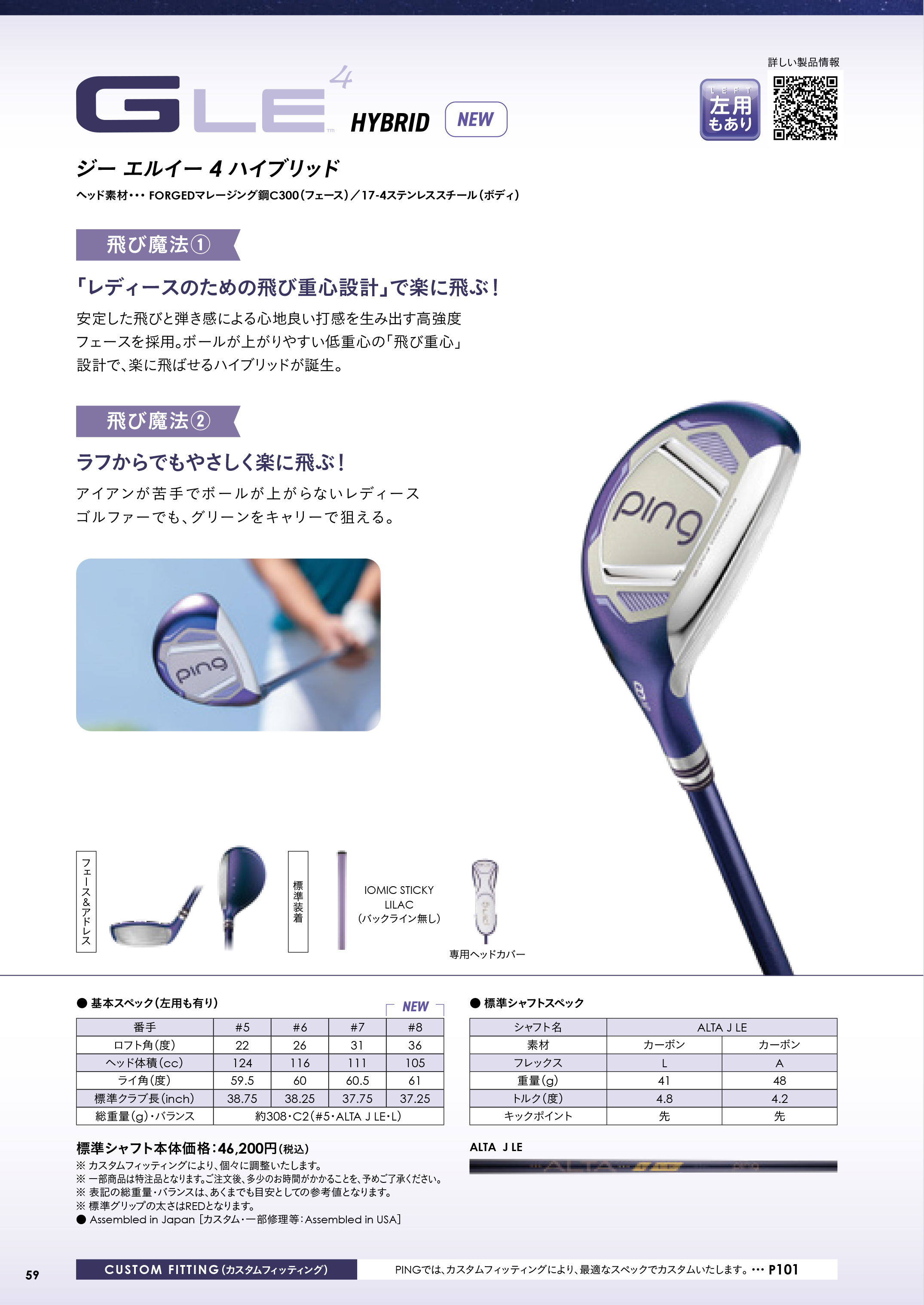 [女仕] PING G Le4 Sets LADIES 高爾夫 套桿組 GLe4 專為女性優化的設計 1開球木2球道木6鐵1推1袋 共10支 26 NEW
