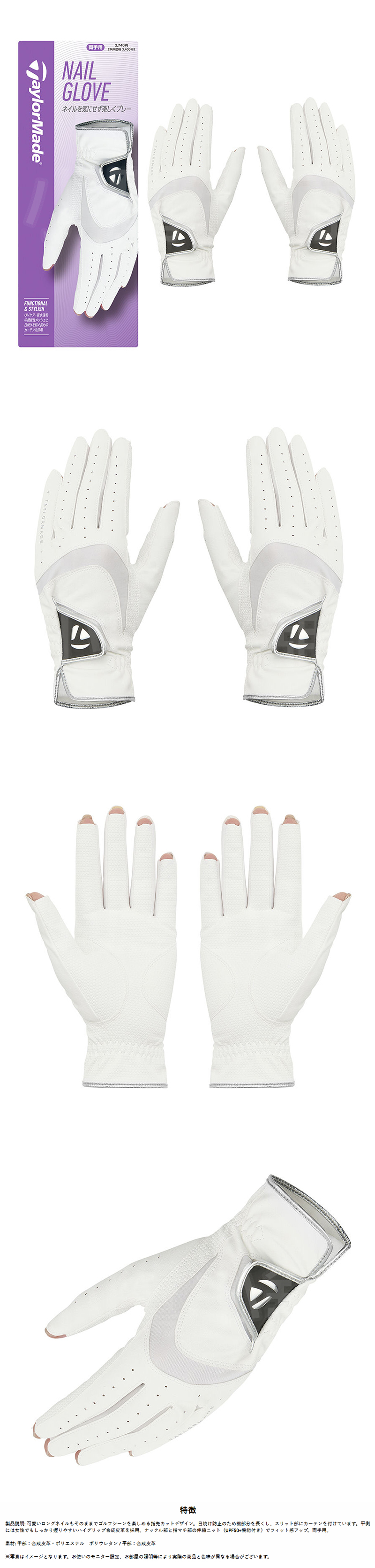 TaylorMade TL939 M24628系列 高爾夫手套 露指手套 運動手套 美甲手套 女仕 一雙 指尖剪裁設計 UPF50+防曬防紫外線 提高抓握力 合成皮革 白色 26 NEW